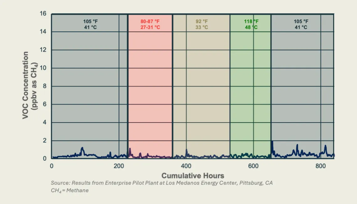 With ION’s technology, zero nitrosamines are created and incremental emissions from the capture process are so low that they are undetectable using standard continuous emissions monitoring systems (CEMS). Additionally, this performance has been demonstrated to be temperature independent, providing the ability to operate in high ambient temperatures with minimal cooling availability.
